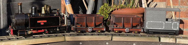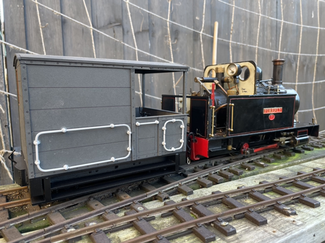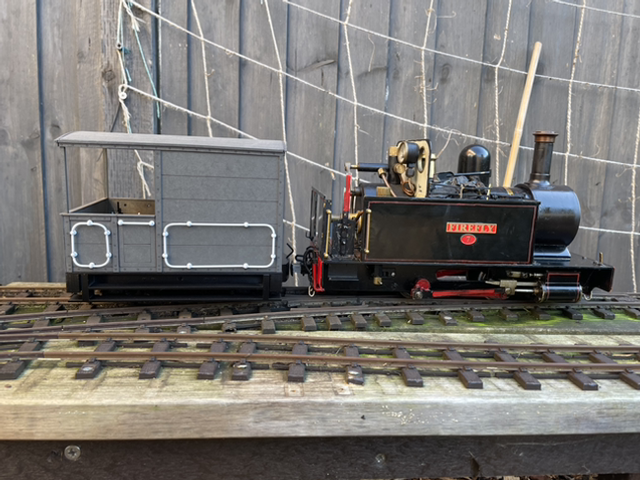 This uses the same chassis as the Guppy wagons and is the same width as a Roundhouse basic series loco or any of the Freelance Accucraft locos. The loco in the photos is my Accucraft Edrig for size comparison.